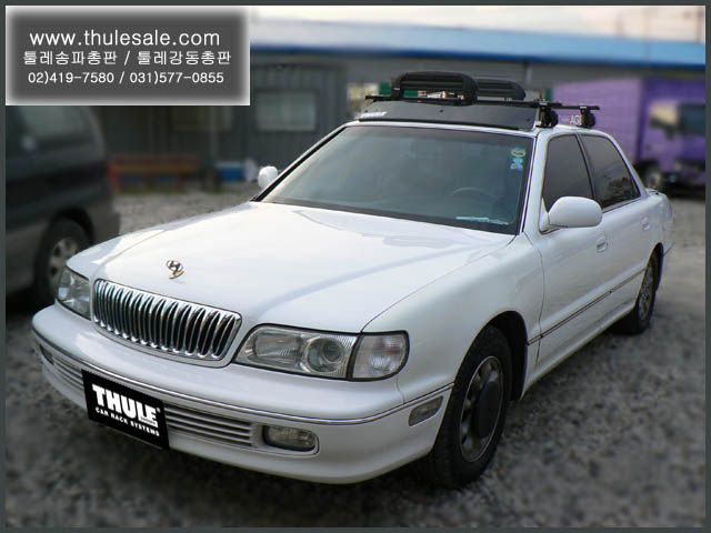 흰색의 뉴 그랜져에 사각바를 이용하여 기본바를 세팅 한 후 스키 캐리어