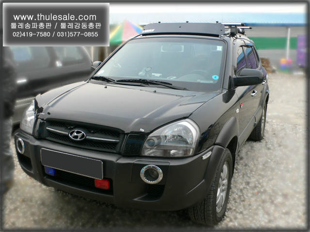 투싼에 루프레일용 에어로기본바 시스템과 주행시 풍절음을 줄여주는 스포일러를 장착한