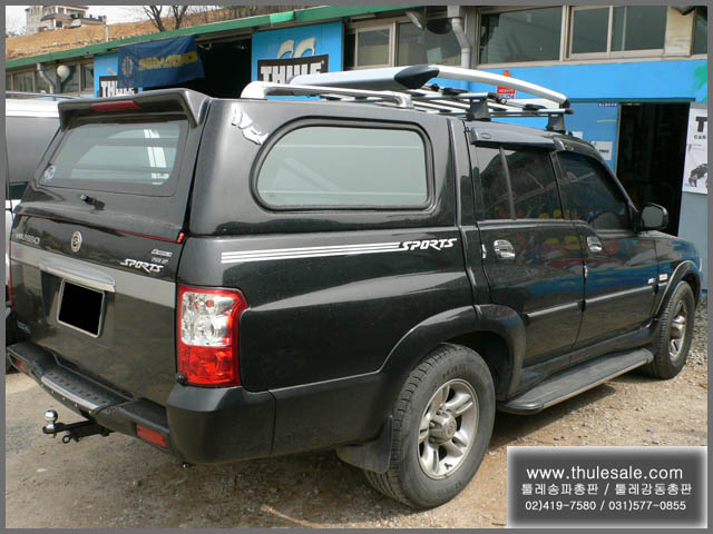 무쏘스포츠 짐칸에 네모반듯한 하드탑을 씌운 경우에도 엑스페디션은 무난한 조화를 자랑합니다.