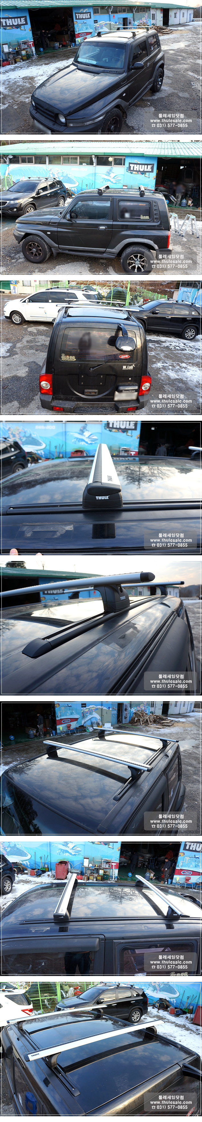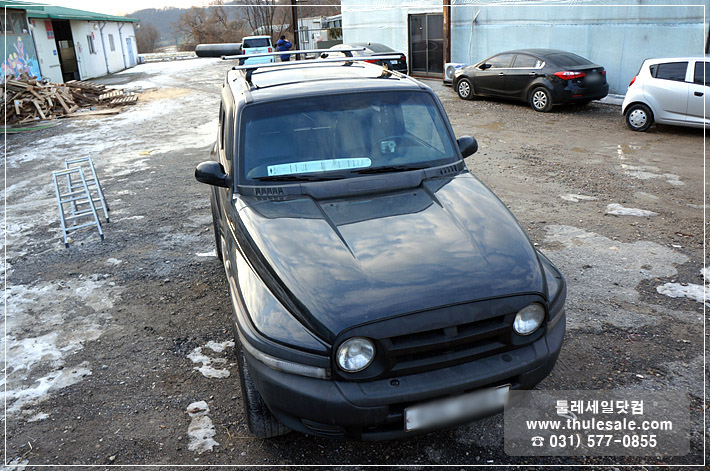 전용키트가 없는 뉴 코란도 차량에 야키마 트랙(루프랙) 시공 후 툴레 풋과 윙바를 설치하였습니다.